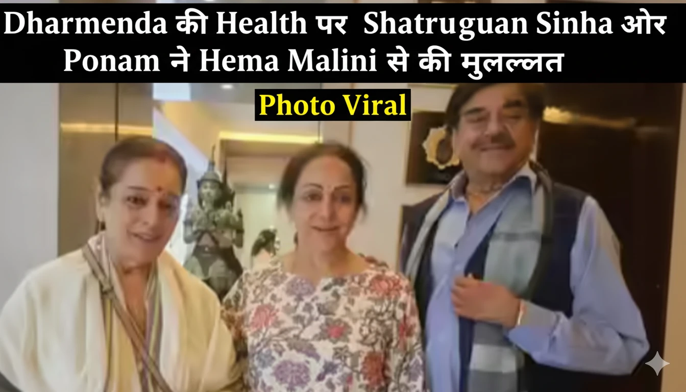 Bollywood Friendship की मिसाल एक बार फिर देखने को मिली है। दिग्गज अभिनेता और पॉलिटिशियन शत्रुघ्न सिन्हा (Shatrughan Sinha) अपनी पत्नी पूनम सिन्हा के साथ, अपने पुराने दोस्त और को-स्टार धर्मेंद्र (Dharmendra) का हाल जानने पहुंचे। धर्मेंद्र को हाल ही में मुंबई के Breach Candy Hospital से discharge किया गया था, जिसके बाद वह घर पर ही अपनी recovery कर रहे हैं। इस मुश्किल समय में, शत्रुघ्न सिन्हा और पूनम सिन्हा ने धर्मेंद्र की पत्नी हेमा मालिनी (Hema Malini) से मुलाकात की और परिवार को अपना support दिया।